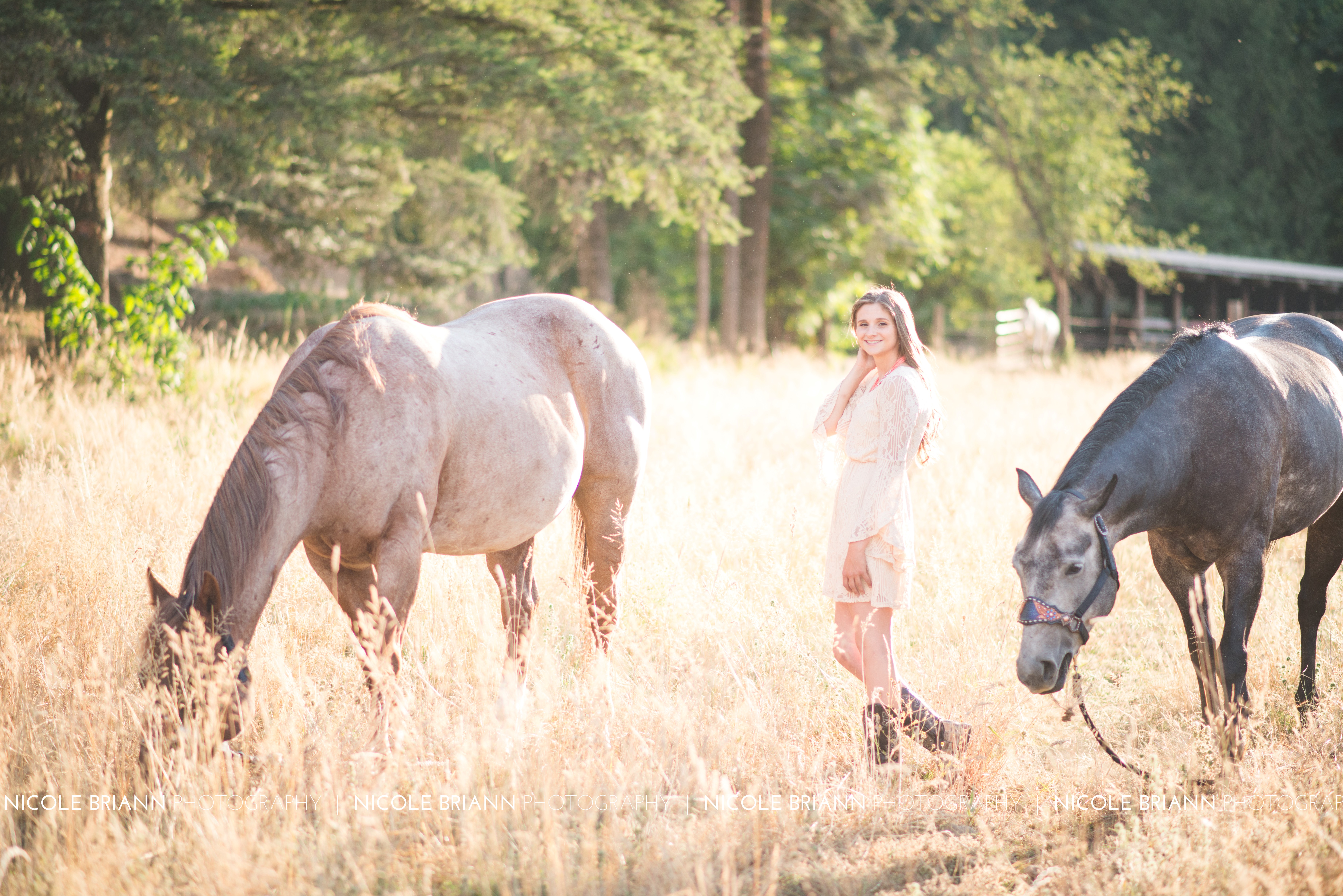 When Sheyanne contacted me about doing pictures with her horses, I was ecstatic! I am a horse girl, and I love being able to incorporate them in portraits. We spent quite a bit of time trying to find the perfect location that would also allow horses – and Sheyanne found it!! The Flying M Ranch in Yamhill graciously allowed us to come use their beautiful property. It was gorgeous! There’s not a whole lot better than a beautiful girl, horses and gorgeous light! It was definitely worth the drive.